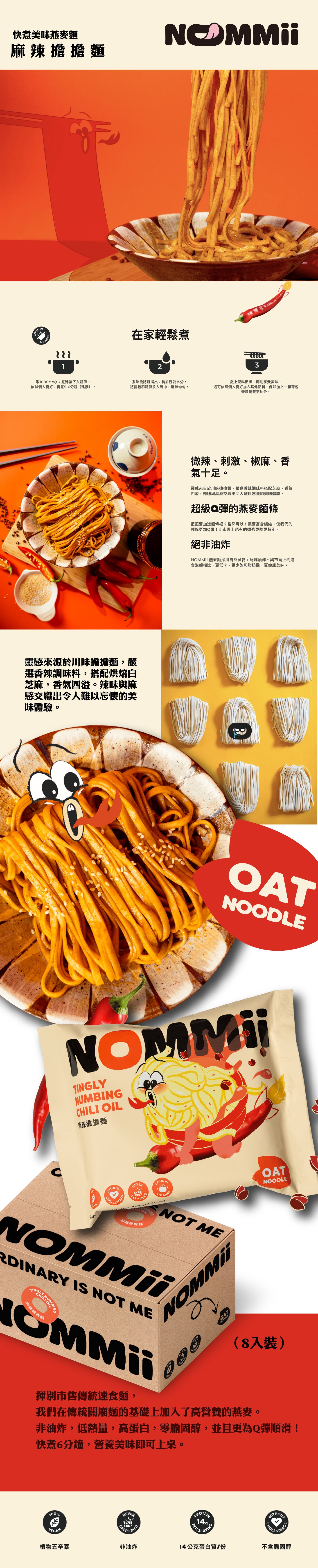 揮別市售傳統速食麵,我們在傳統關廟麵的基礎上加入了高營養的燕麥。非油炸,低熱量,高蛋白,零膽固醇,並且更為Q彈順滑!